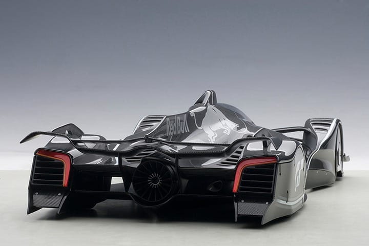 The Gran Turismo Red Bull X2014 Fan Car is the wild “fastest car on Earth free of regulations” concept finally rendered in 1:18 scale. AUTOart’s model brings the Dark Silver Metallic version (Sebastian Vettel livery) to life with a composite-plastic body and diecast chassis. In this review I’ll cover how faithfully it captures the X2014’s outrageous styling, what features it offers, and whether it’s worth adding to your shelf.